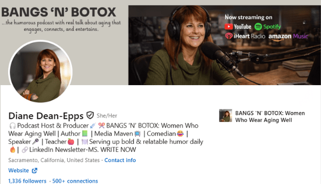➡️See BANGS ‘N’ BOTOX book tab for most recent (humor) book publication