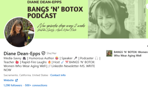 As a relative unknown, Diane acknowledges she might be destined to become the Emily Dickinson of humor—sans living next to a cemetery—with her work gaining popularity posthumously, if at all. Nevertheless, she presses on, writing Bangs ‘N’ Botox, her fourth humor book.